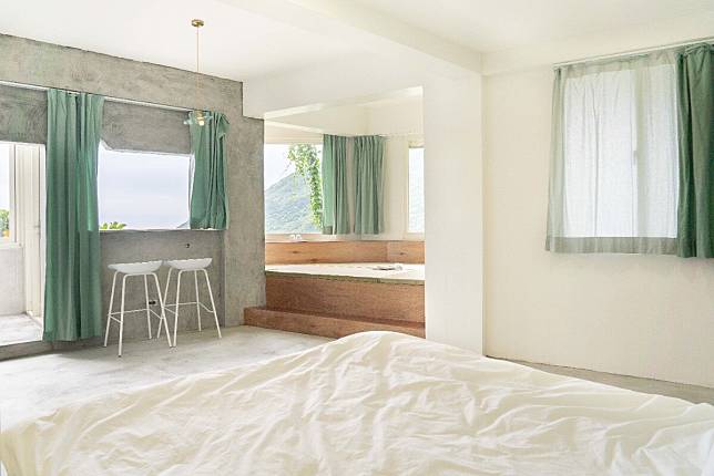 面海背山,有著開闊的綠草如茵。絕佳地理優勢,滿足了視覺,更滿足了感覺。一早睜眼看到就是海天一色的無比蔚藍,讓人從一早就擁有度假的好心情。在享受舒適的睡眠之後,一邊泡澡一邊賞景,順便吃個早餐,自在的像是在家一樣。