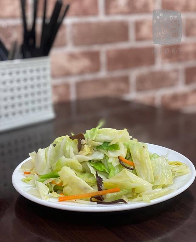 高麗菜則配上黑木耳絲和紅蘿蔔旺火快炒,入口鮮脆、盤底不凝油帶水。
