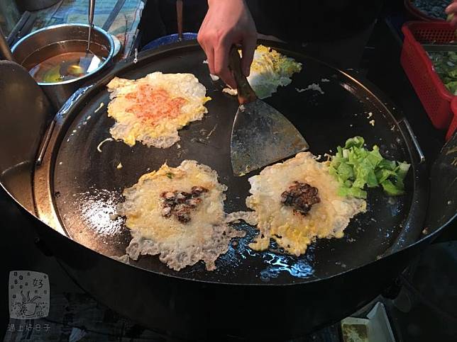 因路邊攤就一張圓鐵板,得輪流做炒飯和蚵仔煎,所以都是一次炒大量,即以便當盒裝盛,附近也不易停車,選擇外帶會方便些。
