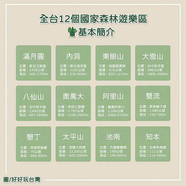 ● 本篇提到「18 個森林遊樂區」有哪些?