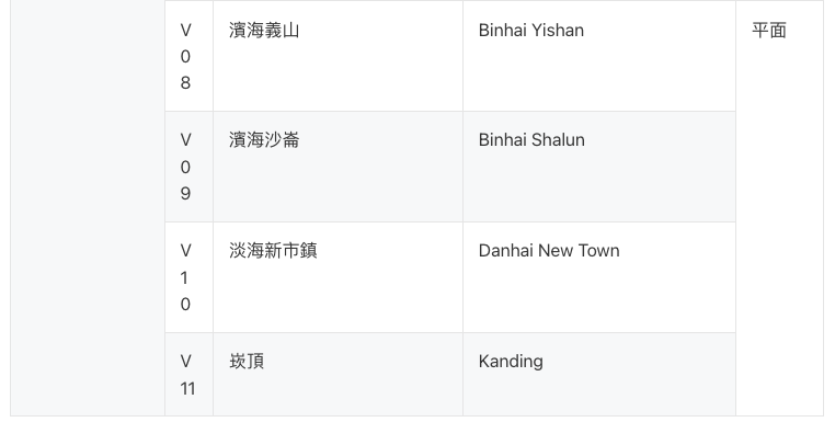 |綠山線|車站一覽(V01紅樹林 – V11崁頂)