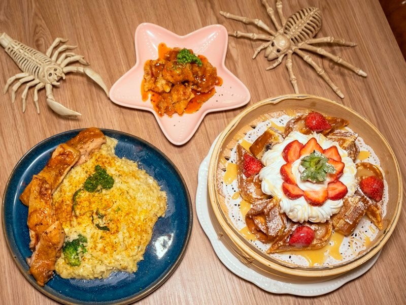 【Oops"驚奇咖啡】主打大份量的美味餐點,在美味料理上桌前,店內用心的裝潢總驅使大家離座觀賞,不但有知名席德進畫家的作品,也有老闆喜愛的英雄聯盟元素,充滿了趣味感,店內也有包廂式的座位,很適合親子家庭或多人聚會喔。
