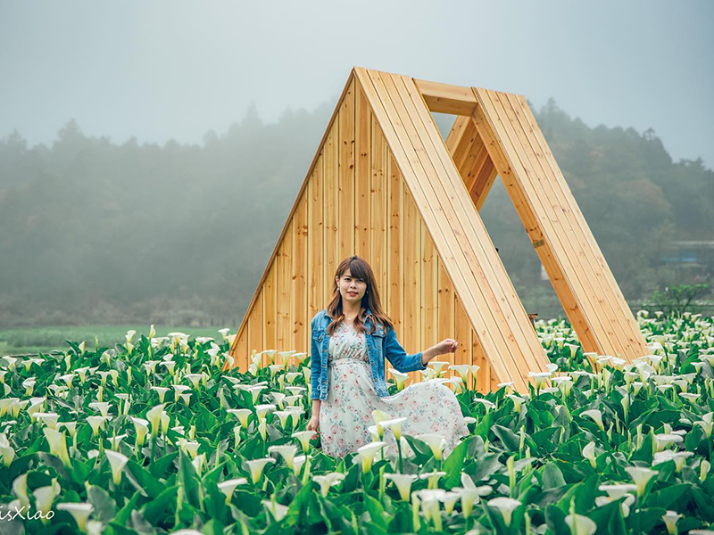 其中人氣勝地「名陽匍休閒農莊」目前拍照區已花開5至6成、自採區約3成,而海芋田中還設置了一個海寓屋,木頭色的小屋搭配上潔白色的海芋,浪漫氛圍充斥著整個園區,想要親自體驗採海芋的話,建議可以先上店家粉專確認今日是否有開放體驗活動,才能避免撲空喔!