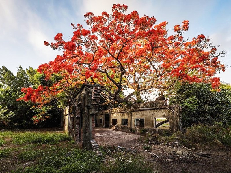 近日天氣漸暖,隨著夏天的腳步越來越近,各地的鳳凰花也逐漸盛開了!在高雄湖內的「柑仔蜜會社」旁,就有一棵百年以上的鳳凰木至今仍在固定季節綻放著,鮮紅的花朵與廢墟形成的衝突系美景,每年都吸引了許多遊客前往賞花。