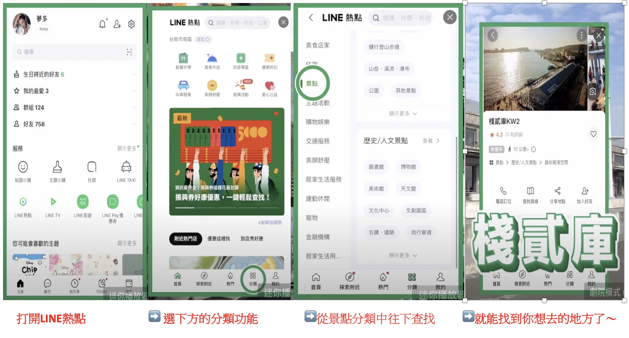 善用LINE熱點的分類功能,查找景點事半功倍!