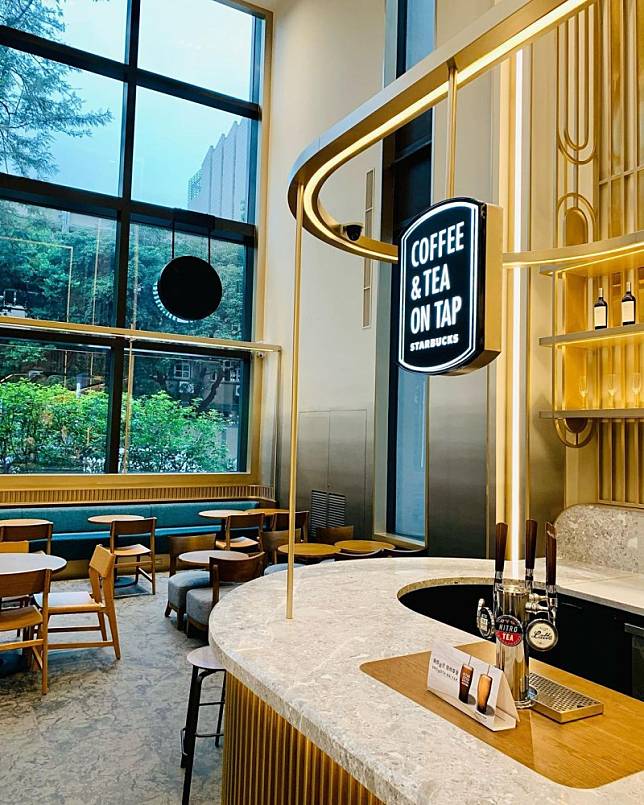「時代寓所門市」為台灣首家進駐飯店的星巴克門市,店門口使用類似清水模的灰色牆面,並種植大量綠竹為灰色牆面添加溫度感,門市內採用中島冷色調的大理石吧檯,而中央中島吧檯以金銅色金屬線條勾勒,古典氣息十分濃厚,除了一般的咖啡飲品外,這裡還提供精緻的紅白酒、氣泡酒及啤酒等酒精飲品,都快分不出來是星巴克還是酒吧了!
