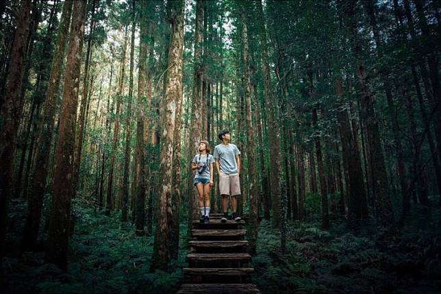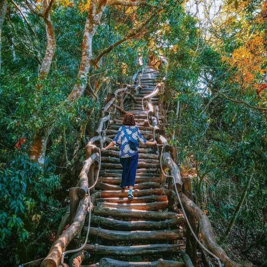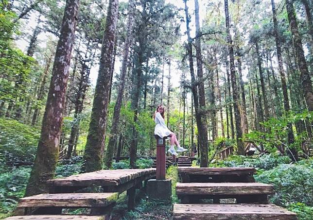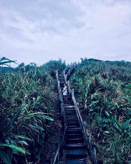 走在綠光森林裡,四周雲霧環繞,走在淺淺的階梯,一點一點地往上爬,就好像踩在雲朵之上,令人迷濛而忘憂。