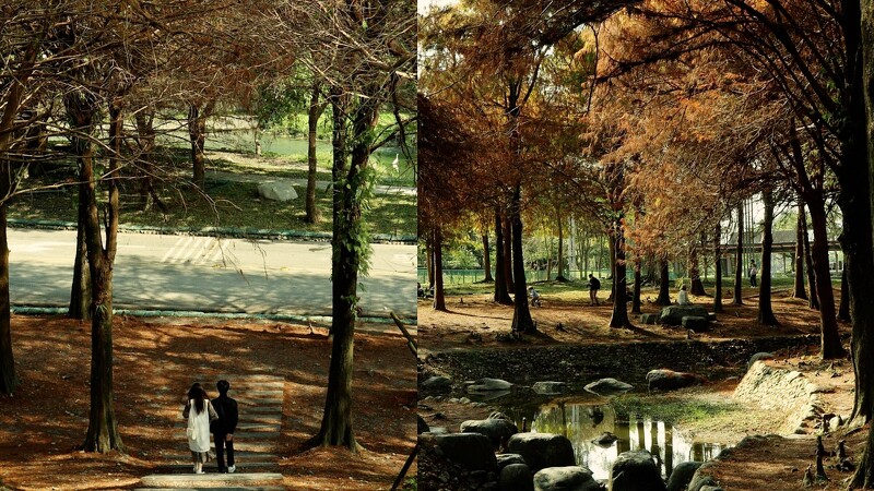 宜蘭也藏有許多知名的落羽松景點,像是「羅東運動公園」便是連在地人都推薦的美景。大量橘紅的葉片灑落地面,林間還有一條小溪,猶如韓劇裡的場景,令人手機拍到捨不得停!趁這個機會好好留下兩個人的合照,勢必為兩人感情加溫。