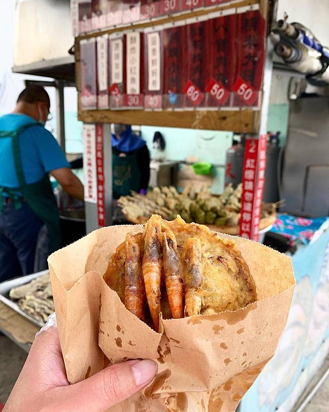 人家說太陽餅裡面沒有太陽,老婆餅裡面沒有老婆,但澎湖這間炸粿的雙拼蝦粿裡面,居然真的有蝦!不是蝦仁是認真的狗蝦,搭配鮮蚵還有滿滿清脆的高麗菜絲,一顆分量足矣,看著竹編盤上各種品項,根本吃不完,剛炸起來酥脆卻不油膩,許多遊客特地騎過跨海大橋而來就是為了這一味呀。