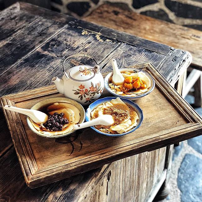 來到二崁聚落的人都不會錯過,在古色古香的建築下,倚靠著復古的桌椅,來一碗冰涼消暑的豆花,吃豆花最怕口感不佳,但它綿密搭配紅豆或是綠豆的微甜,兩者相輔相成的剛剛好,坐在樹蔭下乘涼,心裡也顯得平靜,如果敢吃花生粉一定要加,透過花生的香來提味更是一絕。