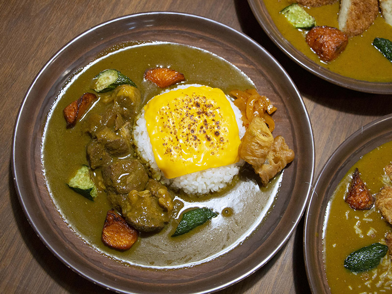 【飯醬curry's&stew】主打的咖哩分別是日式煎焙咖哩、泰式綠咖哩以及印度奶油咖哩,其中日式煎焙咖哩鹹甜的日式風味可嚐到特殊的碳焙可可香,引出咖哩醬中的蔬果香甜;而泰式綠咖哩則加入了經典的濃郁蝦醬,形成了獨特的溫潤微辣口味;印度奶油咖哩將奶油和熟成咖哩醬堆疊、碰出新火花,每一種都值得咖哩控們親自嚐嚐!