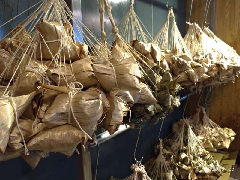 粽子採用田中長糯米,生米水煮,餡料有蝦米、胡椒、上等豬胛心肉,以及用油蔥爆香的香菇,蛋黃則是選用鹹鴨蛋黃,粽葉為古坑竹葉,使用南部粽的水煮法,吃起來軟黏,但冷掉後口感會變Q,糯米吃起來紮實有彈性,餡料的香氣撲鼻而來,加上細沙口感的蛋黃,相當誘人!