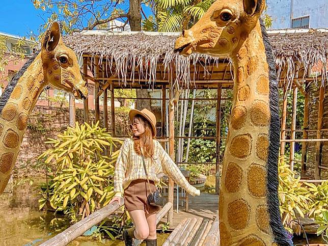 隱藏在市區裡,位在高雄捷運小港站2號出口附近,奧斯汀人文咖啡餐廳擁有滿滿綠意植物以及濃厚的南洋風氣息,戶外設有一座小湖畔,以及竹子搭建而成的小橋連結到水上茅草屋,走在橋上,兩側還有兩隻長頸鹿相伴,不管從哪個角度取景,畫面都非常豐富好拍。而室內則又是不同的風格,偏向復古工業風的裝潢,也讓人快門捨不得停下,來到了這就像身處異國般,讓人格外放鬆與忘憂。