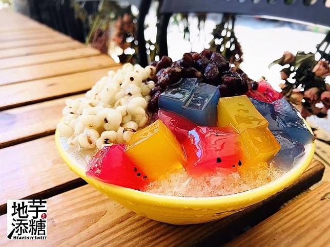從太平轉戰到一中益民商圈,而現在店址則是轉移到北屯區的旅順路上,地芋添糖有著繽紛色彩的冰品、甜品,餐點上桌十分吸睛!最特別的是從芋圓、地瓜圓、粉粿到彩色粉圓全都是自家手工製作,所有的彩色粉圓都源自食材本身的顏色,完全不添加任何人工色素及化學成分,店家對於食材的用心和創意讓人十分讚賞,一碗冰品不只好吃又好看,夏天來一碗真的是最大的享受!離中捷四維國小站步行約600公尺,走路約8分鐘內即可到達。