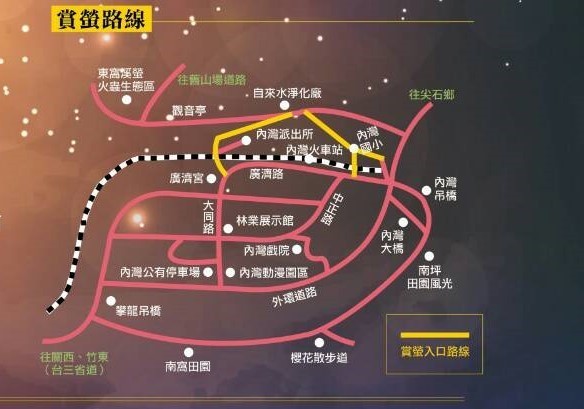賞螢地點:內灣火車站,步行約10-20分鐘