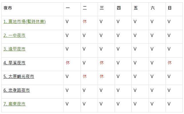台中夜市|每日營業時間
