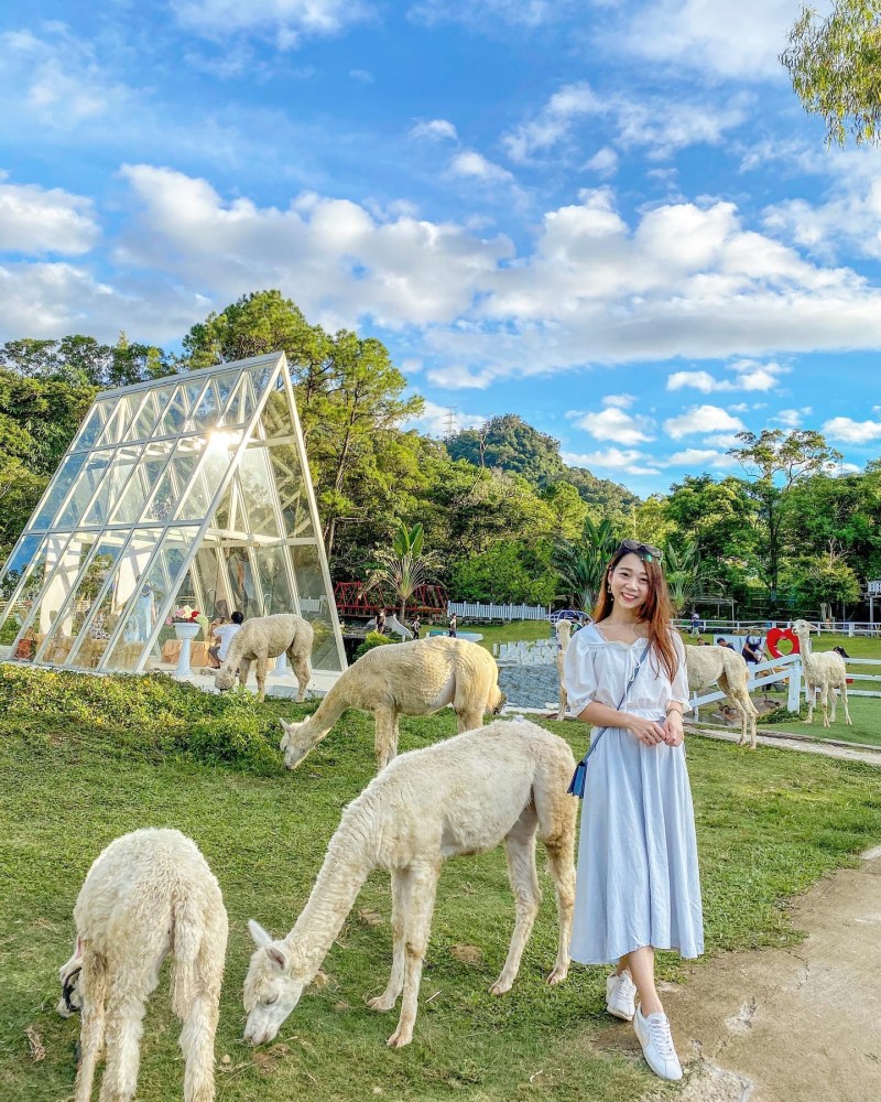 園區內設置了草尼馬區、放牧區、蝴蝶生態區以及玫瑰迷宮,種植許多花卉與香草植物,在廣大的草地上時不時能看見成群結隊的鴨子和鴿子自由的走動,除了小動物外,還設置好拍好玩的佈景,像是投幣式的小火車,還有一座浪漫的「水上玻璃教堂」,是許多偶像劇的取景地,吸引遊客們來打卡拍照,尤其是在薰衣草花季、油桐花季、巨無霸向日葵季時,也非常推薦來到這裡遊玩,不僅大人拍得開心,小孩也可以盡情玩耍。