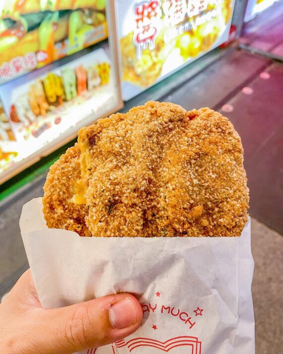 將炒麵麵包的概念轉到刈包上,搭配上原住民特色的辛香料「馬告」,成為東大門夜市一大創意料理。在刈包裡包上炒麵、肉、小黃瓜、洋蔥後,再淋上醬料,口感清爽,肉質不柴不膩,刈包也Q彈有勁。整體份量算大,很有飽足感喔!