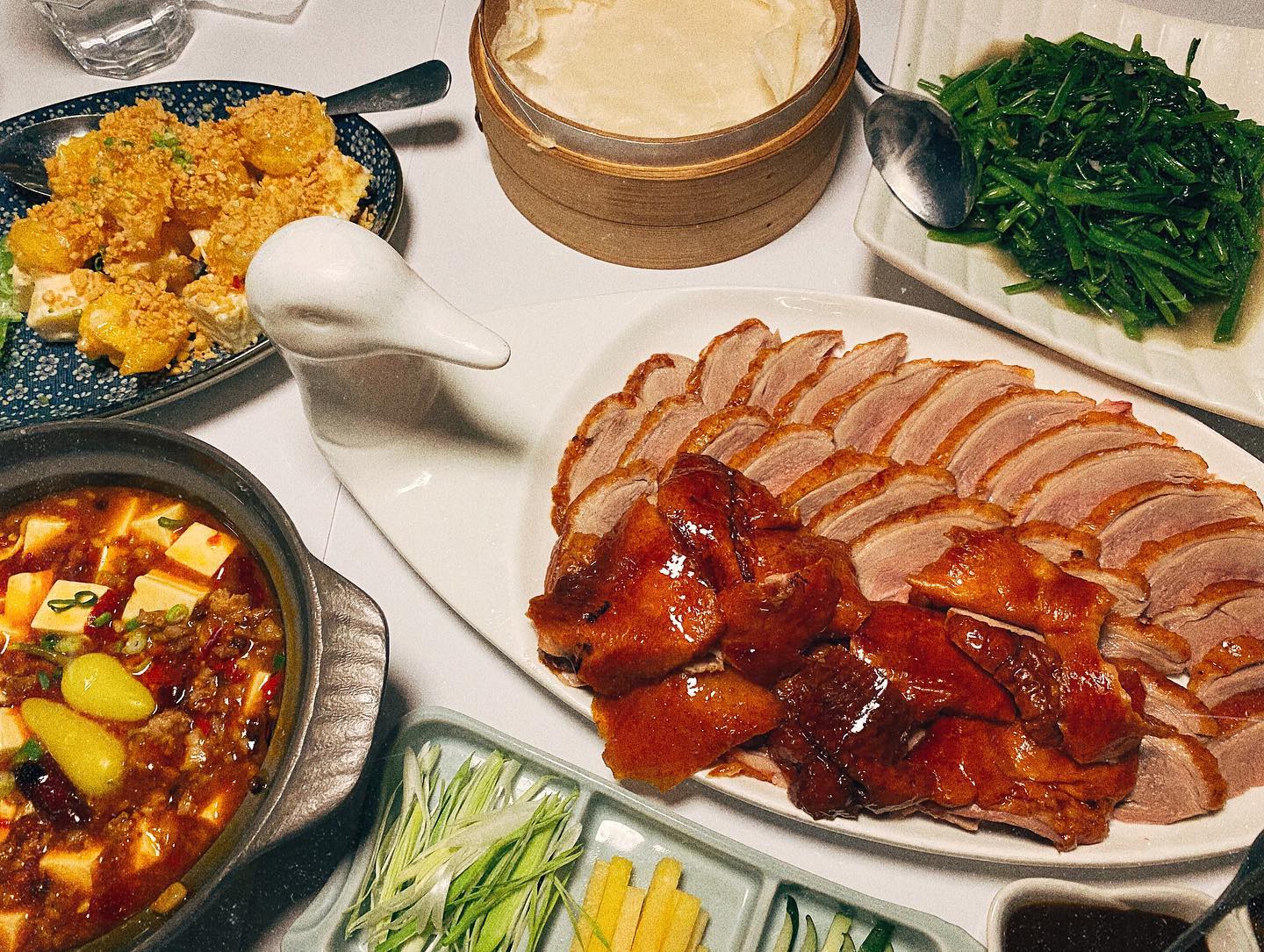 「滿玥軒」以北京烤鴨和川菜料理擄獲不少在地人味蕾,首選料理「烤鴨三吃」香氣逼人,嚴選英國櫻桃鴨淋上特製麥芽糖水,爐烤後色澤飽滿、肉質細緻。脆皮鴨肉搭配鳳梨心、小黃瓜、蒜苗絲或帕內拉焦糖風味絕佳;剩餘鴨骨酥炸、熱炒或煲湯都很適合。近期迎來 5 月母親節感謝季,期間推出多人套餐外帶服務,不妨趁此機會將香脆烤鴨和美味餐點全部打包回家吧!