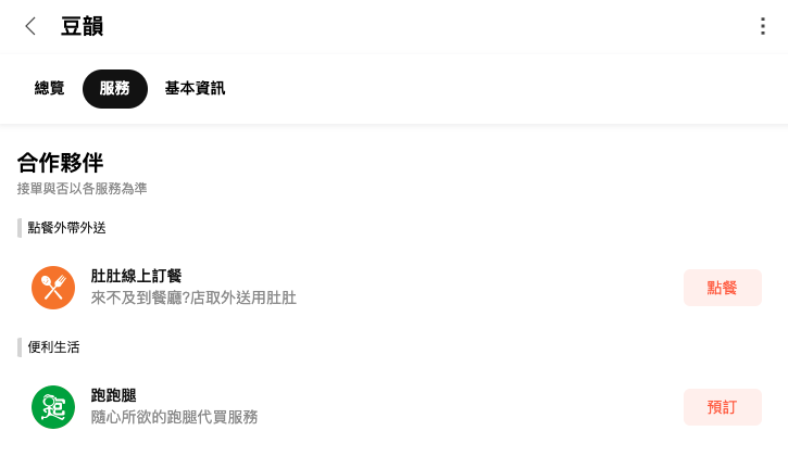 跑跑腿:北部地區立即點擊商家資訊卡下的服務按鈕!