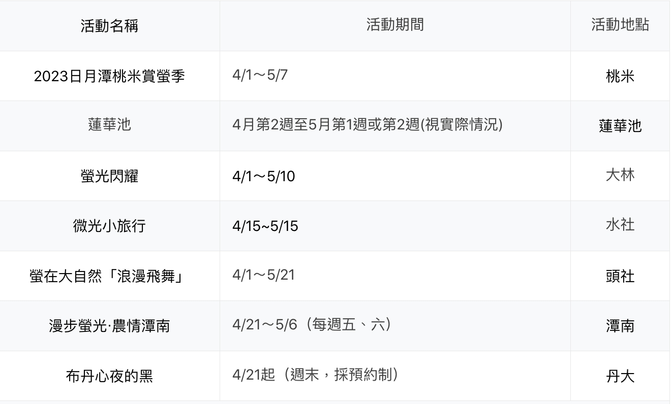 一、日月潭水社賞螢趣-微光小旅行:150元/人,兒童100/人(每日限100人)