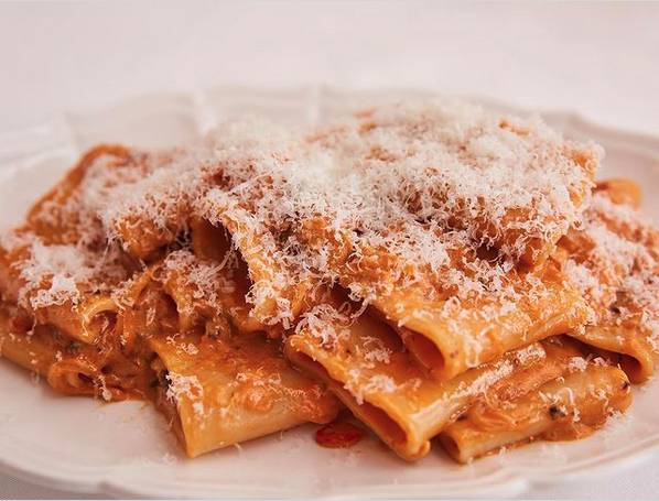 伏特加番茄奶油水管麵與章魚$720(大)/燉嘉義牛舌與奶玉米$400
