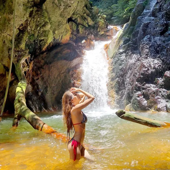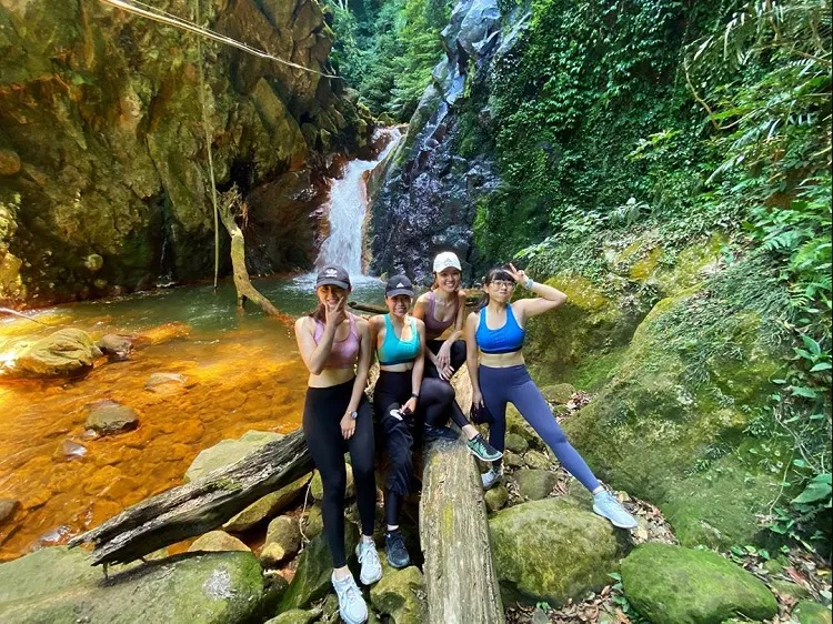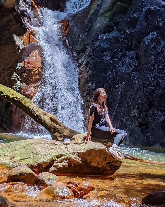 在天母古道途中,遇到打印台往下切,便會迎接翠峰瀑布,往下的路段多為濕滑泥濘,部分窄小路段需要繩索輔助行走,必須踩穩每一步。抵達後眼前的景象令人難忘,瀑布下方的綠水與黃橘色的溪石交融,顯現出有別於其他瀑布的獨特風貌,因此無論沿途的路有多難行,依然許多人願意為了它來一窺全貌。