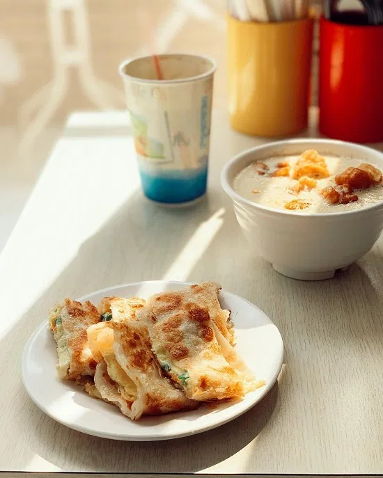天母知名的早餐選擇─天母豆漿,環境明亮乾淨且有冷氣,最多人點的品項是蛋餅,手工擀的餅皮偏厚且酥脆Q彈,獨自完食一份是有飽足感的,嗜辣的人推薦要加店家自製的小魚干辣椒,完全替蛋餅大加分!最後,經典的甜豆漿的香氣濃郁與鹹豆漿的獨到風味各自擁有忠實粉絲,就等你二選一囉!