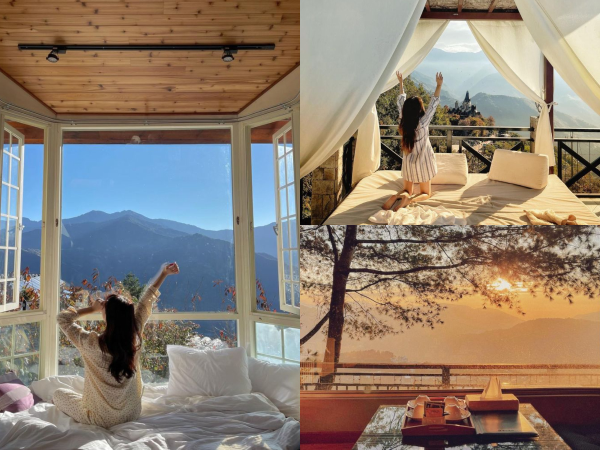 號稱是「峇里島風的度假山莊」的清境春雨行館,也是南投清境近年來非常熱門的民宿之一,除了壯麗遼闊的山景外,戶外平台上的浪漫發呆床,更吸引許多人前來拍照打卡,在發呆床上從一片橘紅色的夕陽看到遍佈星星的夜空,還有什麼比這樣的愜意更讓人放鬆?