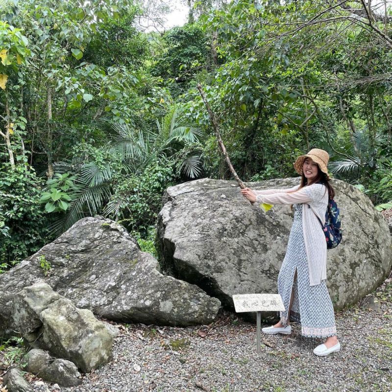 往富源吊橋的路上會經過石頭公園,由沉積岩和火山岩經過變質作用而形成大大小小的石頭,這裡每個石頭都有自己的名字,像是情定一線天、一刀兩斷、我心已碎等,不禁讓人讚嘆大自然的鬼斧神工。