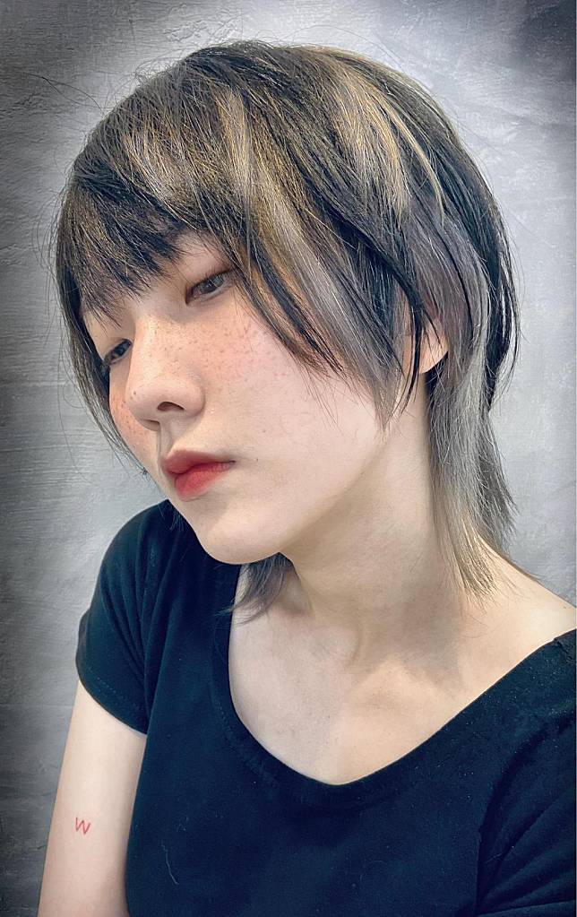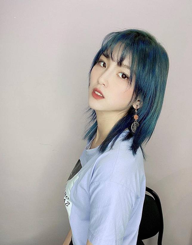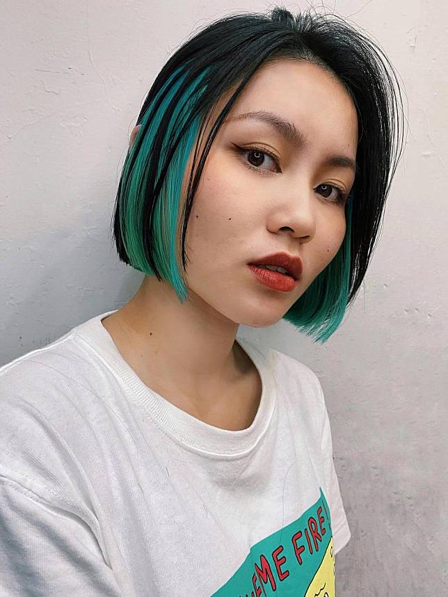 短髮就該來個不一樣的感覺,藍綠色讓整個人跳出來