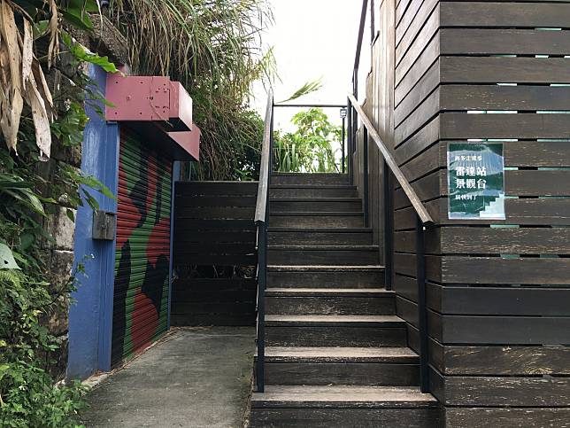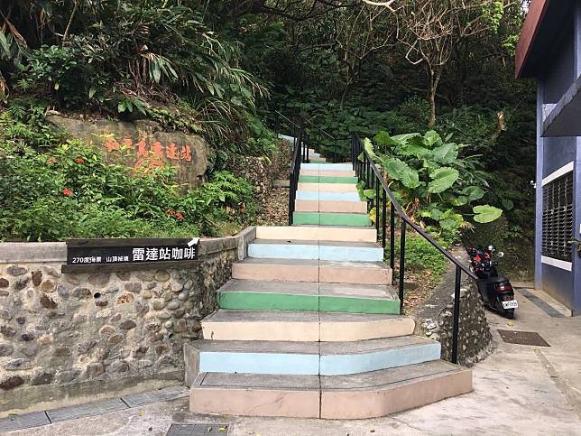 那就是位於和平島公園制高點的「雷達站咖啡」由過去的軍營哨站改建而成的雷站咖啡,入口有點難找,大概的位置是在環山步道靠近阿拉寶灣管制區入口的附近,在進入前可以看到一個漆成彩色牆面的檢查哨站。再一直往裡走,就會看到雷達站咖啡的一大關卡「101階階梯」,這裡有點考驗體力,需要切切實實的走完101階才能到達雷達咖啡喔!