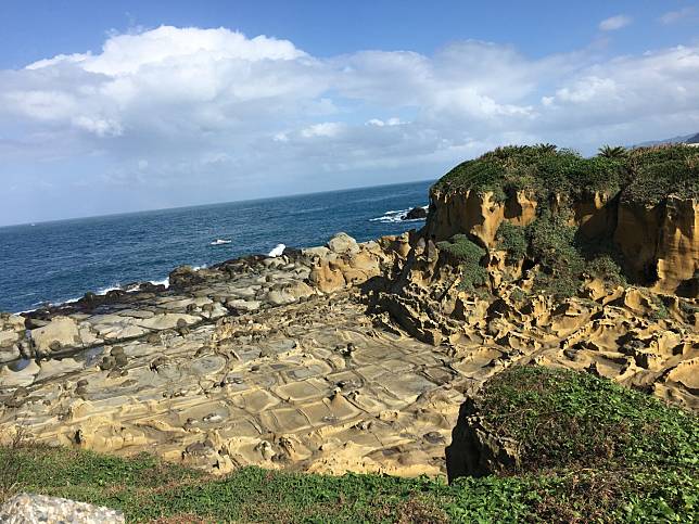 千疊敷是和平島公園內很有特色的地質景觀,千疊敷的命名由來,是因日本人看到這片岩石地景,覺得很像日本的榻榻米而取名。這裡的岩石經過海浪長時間的沖刷,而形成一塊一塊被分割的岩石樣貌,非常有趣喔!