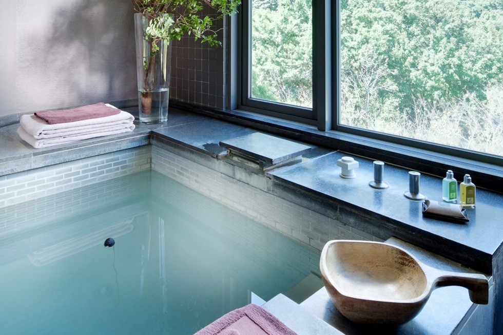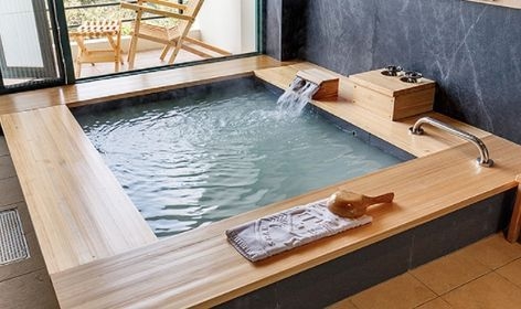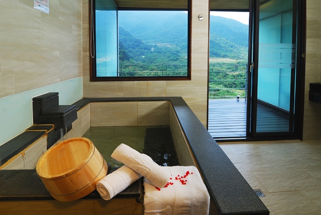 沐舍溫泉渡假酒店鄰近金山老街,與其他陽明山溫泉最大不同是屬於海底溫泉,是大屯火山於海岸噴發形成,仔細一聞能感受到水氣中悠悠的鹽味。泡湯休息除了基本的湯屋外,特色套房也都有兩小時的休息方案,能依照經費選擇最適合自己的湯屋類型。