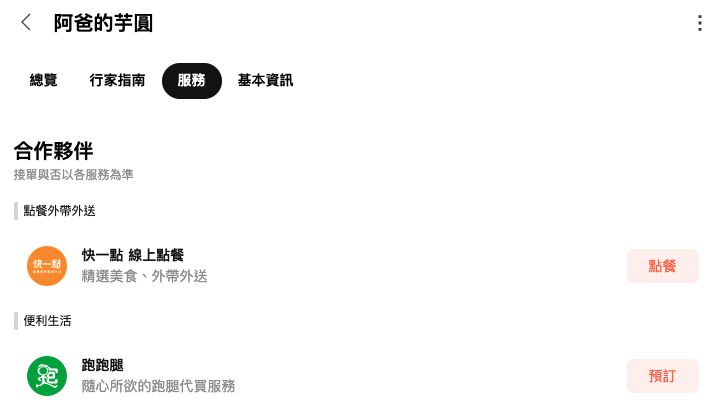 跑跑腿 北部地區立即點擊商家資訊卡下的服務按鈕!