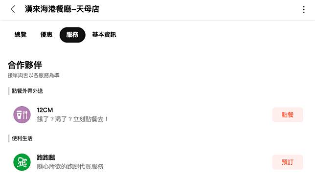 跑跑腿 北部地區立即點擊商家資訊卡下的服務按鈕!