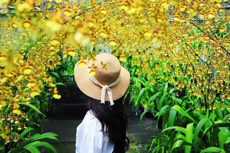 初夏將至,百花齊放,浪漫的愛情花、繽紛的繡球花、熱情的金針花、火紅的鳳凰木相繼綻放,全台唯一金燦耀眼的黃金文心蘭隧道也已綻放!