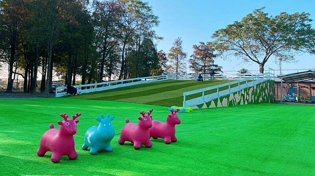 另外一大特色,便是能與可愛動物互動!園區內能餵食溫馴梅花鹿,還有山羊、兔子齊賣萌,畫面相當療癒。還有四季皆美、會在秋天換上夢幻顏色的大片落羽松,園方還貼心在此區域放置許多鋪著坐墊的稻草堆,方便網美們在此拍一波愜意大片。