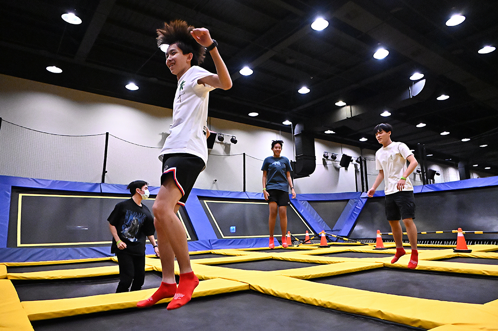 彈跳是訓練心肺功能、平衡感和核心肌群的強效有氧運動,大幅運動下肢肌肉,同時減少對腳踝和膝蓋衝擊,約10分鐘左右的運動時間就會爆汗。「肖跳Crazy Jump」把運動變成好玩的遊戲,可在自由彈跳區盡情跳耀、旋轉,用各種姿勢體驗超人彈跳力;也可親子組隊展開彈跳躲避球或排球競賽。想挑戰自我、體驗NBA球星飛天灌籃或體操選手的空翻跳躍,在專業技師量身打造的安全彈跳空間中,也都能輕易實現。