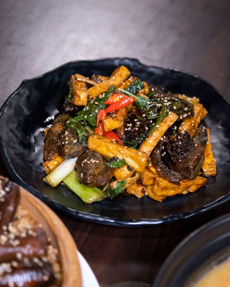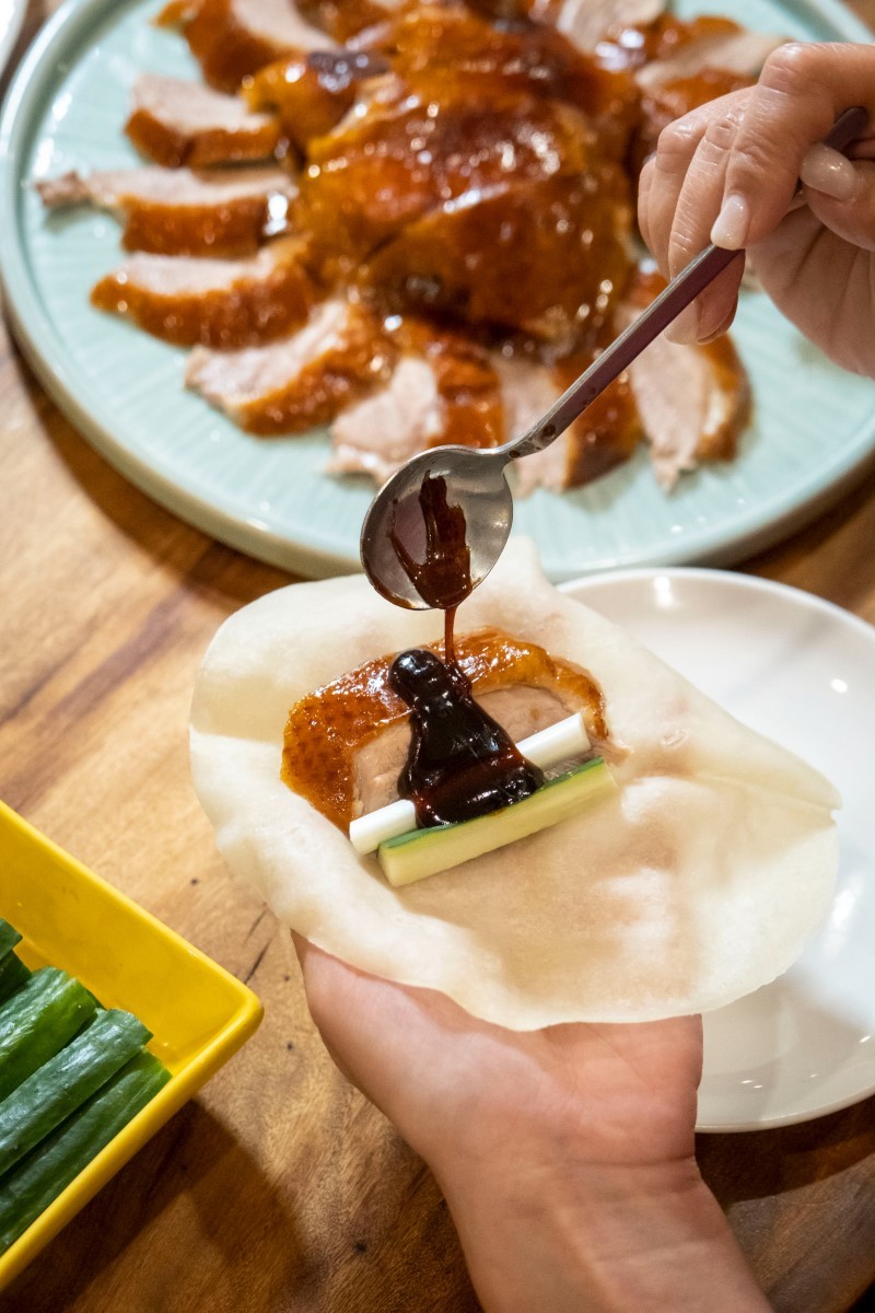 北鴨三吃第一吃是香蔥鴨餅,第二吃為「口袋餅鴨鬆、鴨粥、鴨絲炒竹炭麵三選一」,第三吃則是「野菜全鴨火鍋、豆醬炒鴨骨二選一」,多種組合與搭配讓人每次來都能吃到不一樣的口味,來【銘師父餐廳】一解口腹之欲吧,也提醒大家想享用烤鴨的饕客們務必提前一天預訂,以便餐廳提前備料喔!