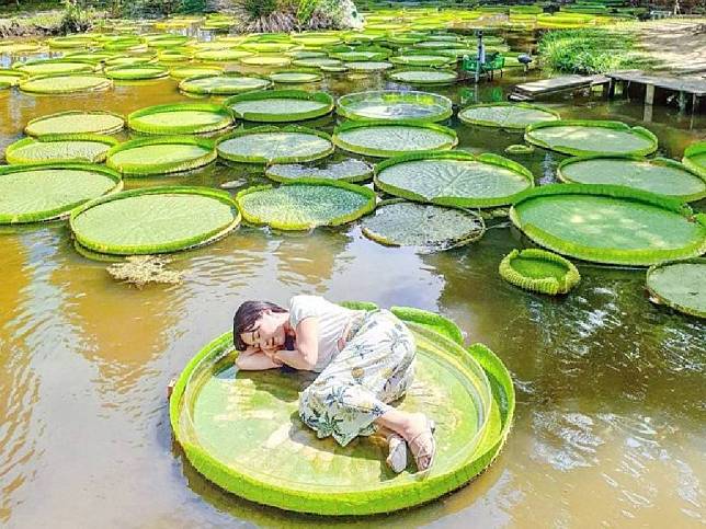 桃園觀音的蓮荷園休閒農場是當地非常知名的賞荷、賞蓮景點,裡面有超大的大王蓮花,可以讓遊客或坐或臥在蓮葉中,體會一下站在水中央以及拇指姑娘的感覺。