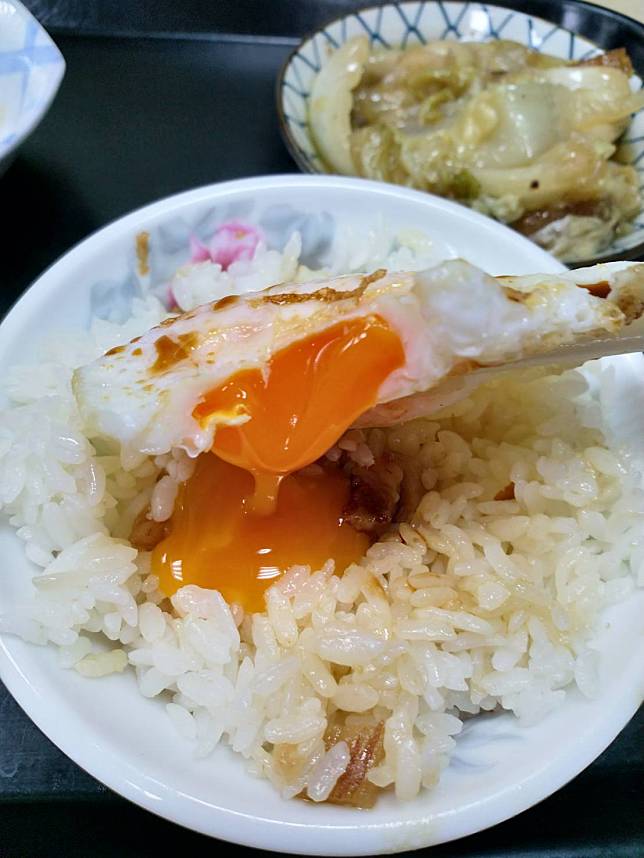 另外,推薦的搭配菜單是店內的荷包蛋(15元),珠記的荷包蛋並不是蛋黃全熟,而是半熟蛋,將荷包蛋放到油飯上面再用筷子戳破,蛋黃液跟稍硬的油飯搭配著吃,簡直是絕配呢!