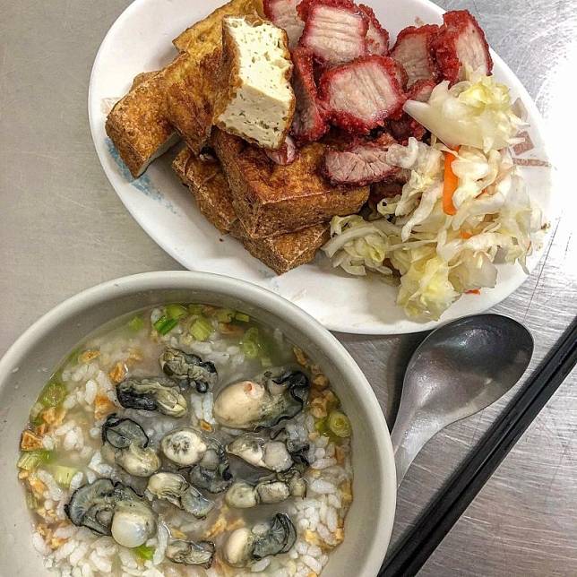 台中第五市場裡有間生意很好的蚵仔粥,專賣粥品與炸物,粥類有蚵仔粥、肉粥、清粥和綜合粥,炸物則有紅燒肉、肉捲、香腸、米腸、豆腐等可以選擇,或是也可以乾脆來盤綜合炸物拼盤,蚵仔粥的口感不像廣東粥那樣軟爛,介於湯飯與廣東粥之間,蚵仔雖不算大顆但嚐得出新鮮度,清甜湯頭伴隨油蔥酥、蒜酥、芹菜的香氣,讓一碗粥變得不平凡!