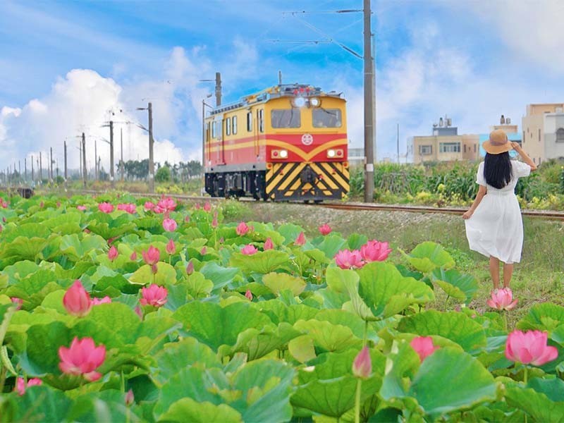 苗栗通霄鎮位處海線地區,有著許多以大海和藍天為美麗佈景的打卡美景,而隨著蓮花綻放季節的到來,位於農福道路旁的一處蓮花池映照呼嘯而過的火車畫面相當動人,在這時節總有許多鐵道迷到此追隨「蓮花火車」的浪漫景致。
