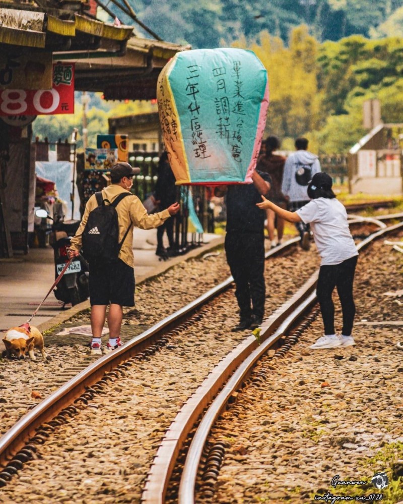 倚著鐵軌道的【十分老街】成為特殊的人文造景與文化,到此近距離欣賞火車駛過時,在空氣中、氣味裡、鐵軌匡噹的聲響中看著火車靠近和駛離,是十分老街才有的景色之一,在火車駛離後還可在此放天燈為此趟旅程作紀念。