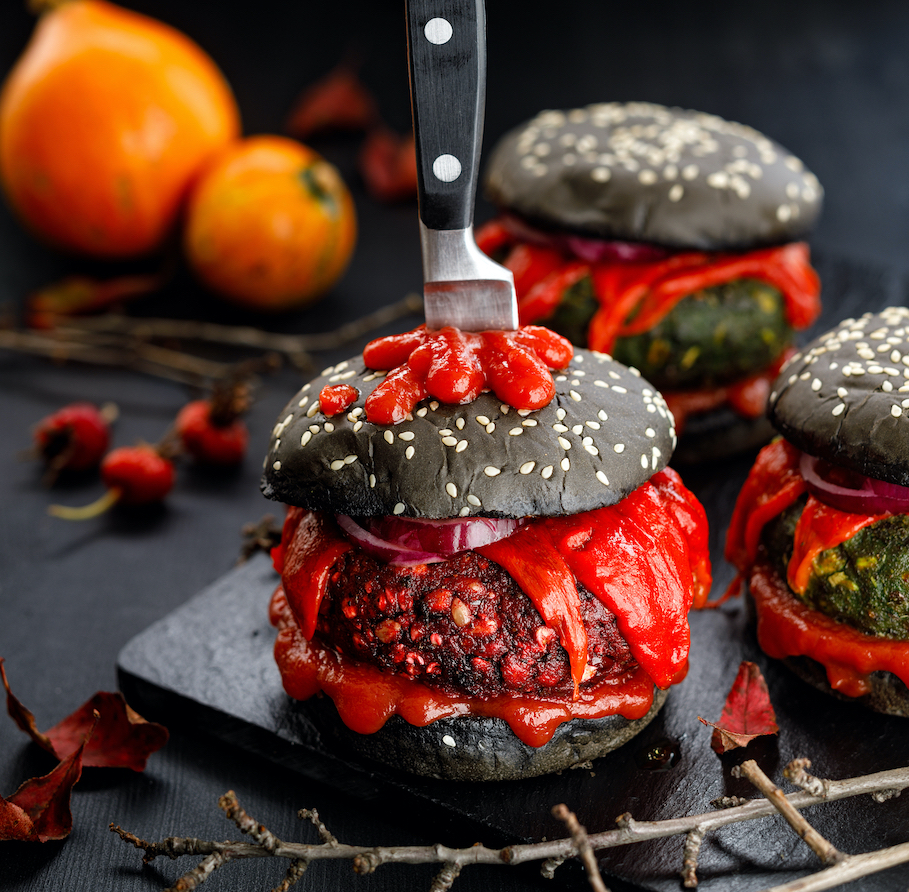 「紐約早餐女王Sarabeth’s」以詭譎華麗風格推出「黯夜尋堡Darkness Halloween」萬聖節限定新品,巧妙運用萬聖鬼怪夜行概念,讓幽黑惡魔、腥紅血族相繼登場,打造出2款與眾不同的漢堡及2款飲品。黑竹炭漢堡「黯黑惡魔古堡」─萬人迷黑松露搭配卡門貝爾起士,馥郁濃厚牽動心弦;紅麴漢堡「黯紅吸血古堡」─墨西哥辣肉醬佐以酥炸紫洋蔥,嗆辣帶勁一吃上癮。