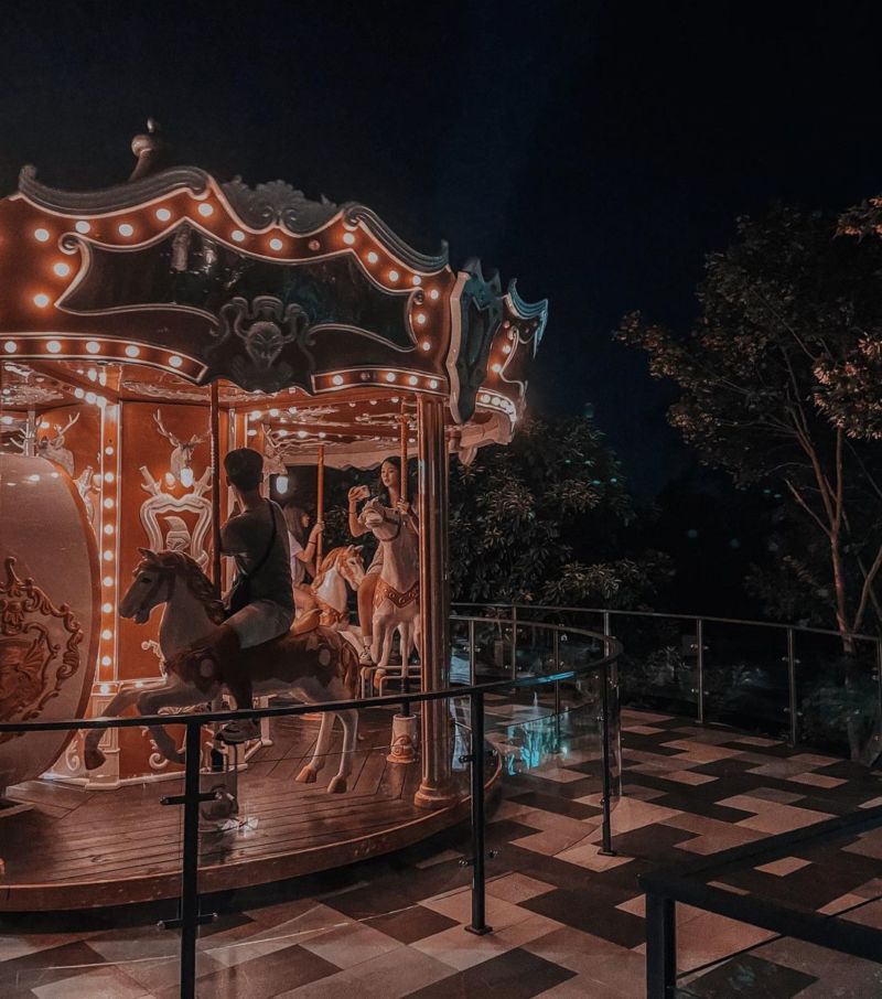 來到陽明山一日遊,好適合在草山夜未眠畫下完美的句點。重新整修過後的草山夜未眠充滿了絢爛的女孩遐想,不僅有夢幻的旋轉木馬,還能在寬敞舒適的座位區啜飲飲品與小食,與三五好友或是情人坐擁百萬夜景,美不勝收。