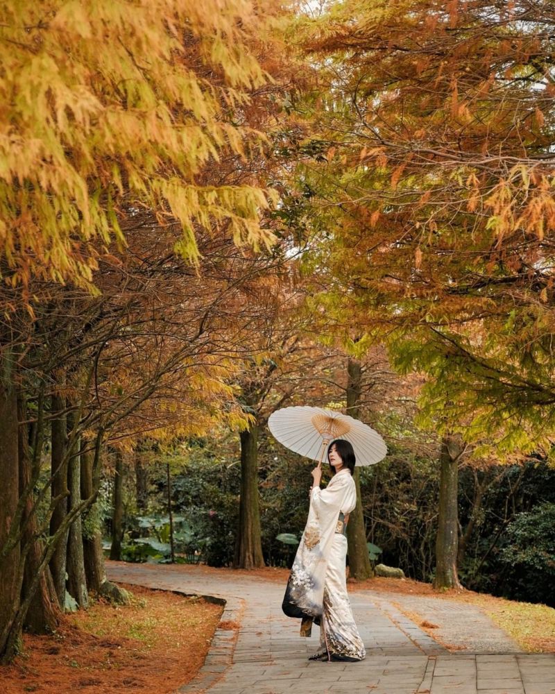 絕美的步道明亮乾淨,宛如身處日本一般,將冬季的冷冽與落羽松的暖調巧妙融合在一起,非常美麗。步行在該步道上更可以看見兩旁的姑婆芋以及蕨類,彷彿大自然的教室般,讓人沈浸於芬多精之中。而順著冷水坑步道往上漫步,能夠到達正處於芒花季節的擎天岡,不僅俯瞰台北市景,更能讓雪白的芒花療癒身心。