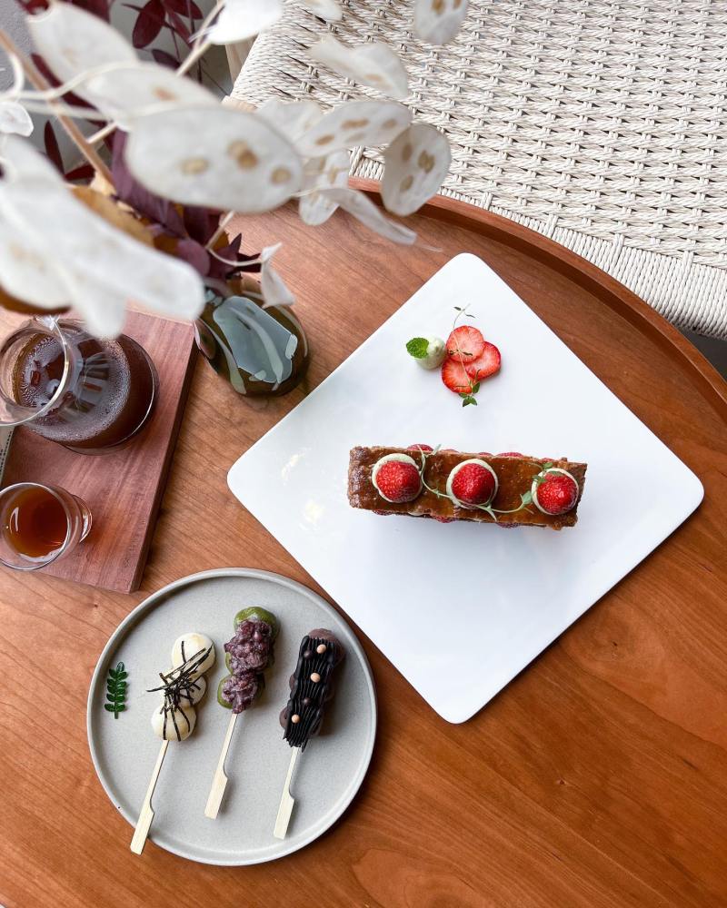 透明空氣每人低消400元,可合併計算,雖然有些偏高但不收服務費喔!餐點有日式定食、茶品、甜點等,尤其懷念日本美食就不能錯過烤糰子,三種口味吃起來完全不膩,以及每日限量五份的草莓千層,先點先贏,來員林不能錯過呀!