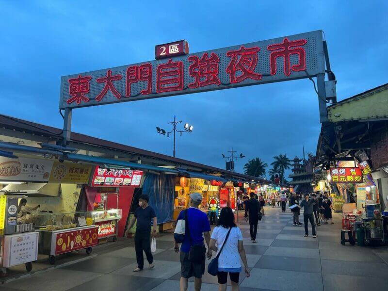 不管到哪個縣市旅遊,夜市行程都是必要的吧!花蓮晚上必逛夜市最有名的非東大門夜市莫屬,東大門夜市其實是由早期的自強夜市、福町夜市、大陸各省一條街、原住民一條街四大夜市集合而成,從空中俯瞰整體呈現一個「ㄇ」字型,走道寬敞明亮,兩旁的攤販整齊乾淨,逛起來十分舒服。